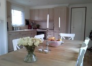 | Keuken: | Open keuken met inbouwapparatuur zoals kookplaat, koel-vriescombinatie, combimagnetron, vaatwasmachine en telescoopafzuigkap |
