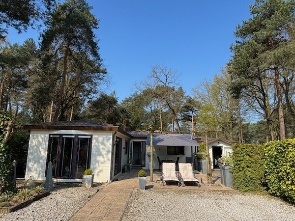 Riant, uniek gesitueerd chalet op een van de fraaiste locaties met vrij uitzicht op het ven, privacy biedende smaakvolle beplanting en zonnig terras. Zeer goed onderhouden. Met tuinhuis/berging. Gevarieerde bestrating.