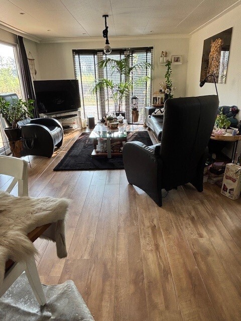 | Keuken: | Open keuken met inbouwapparatuur zoals kookplaat, koel-vriescombinatie, combimagnetron, vaatwasmachine en telescoopafzuigkap |