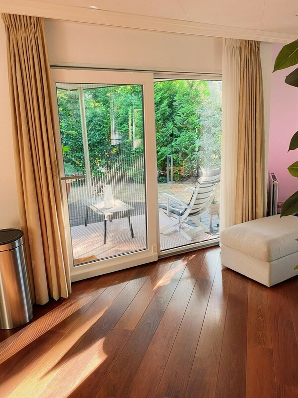 Rustig gelegen en zeer goed onderhouden dubbel chalet met tuinhuisje.