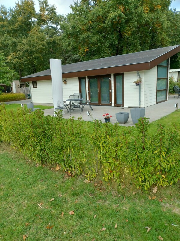 Rustig gelegen en zeer goed onderhouden dubbel chalet met tuinhuisje.